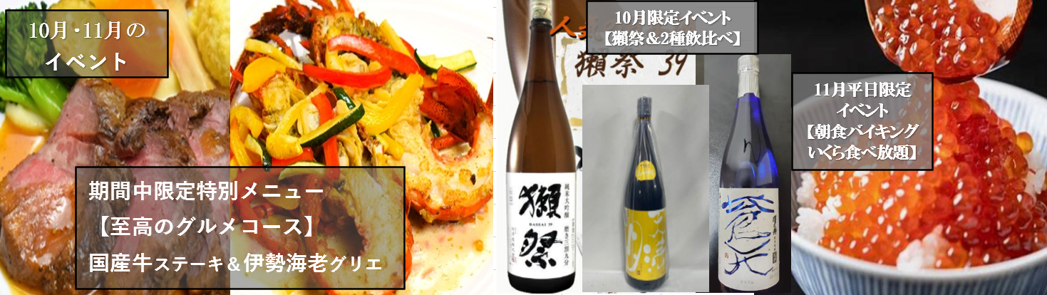 10月,11月もダブル企画! 至高のグルメフェア&秋季宿泊連泊割引♪