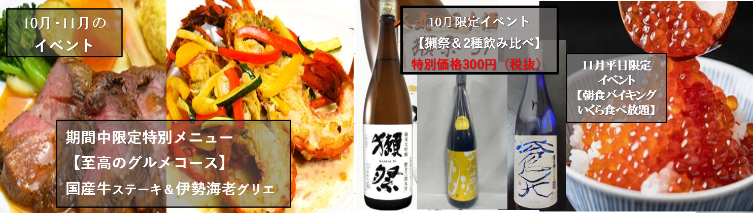 10月,11月もダブル企画! 至高のグルメフェア&秋季宿泊連泊割引♪