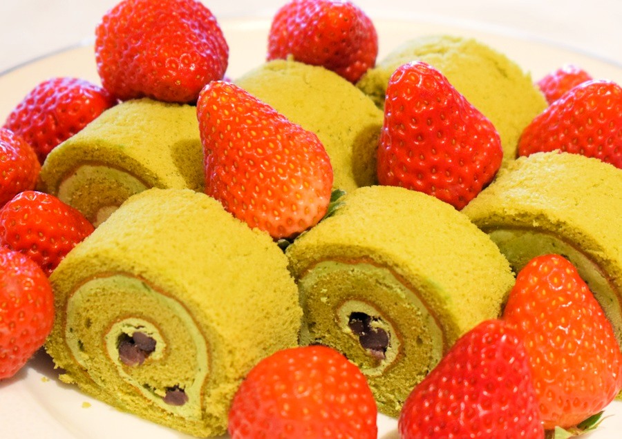 抹茶ロールケーキに抹茶のムース、抹茶ブラウニーをご用意。